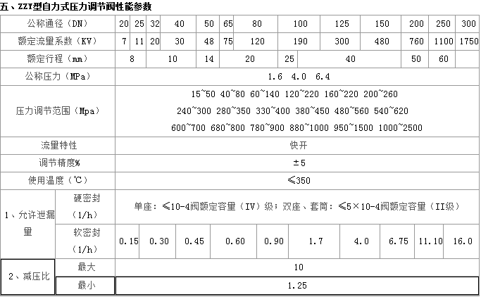 - 4. 满足各种工况 产品公称压力等级有PN16、40、64阀体口经范围DN20~DN300.泄露量等级有2级、IV和VI能三档流里特性为快开,压力分段调节从15~250MPa。可按需要组合满足用户工况要求。