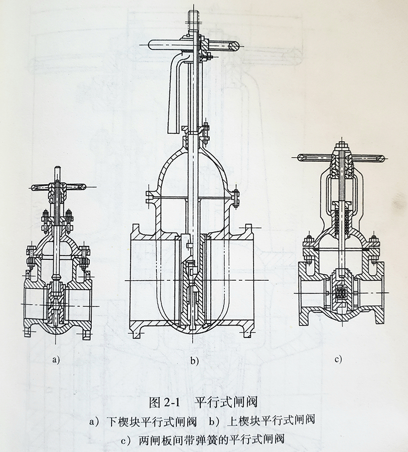 平行式闸阀的两密封面与管道轴线相垂直,即两个密封面相互平行的闸阀,如图2-1所示。
