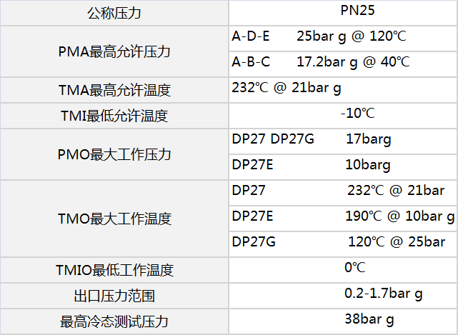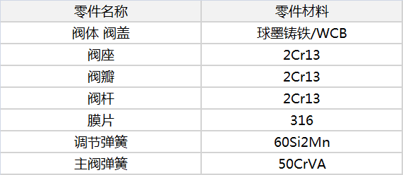 导阀型隔膜式减压阀材质图表
